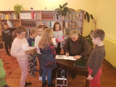 | 26 października 2016 roku uczniowie najmłodszych klas I i II szkoły podstawowej uczestniczyli w spotkaniu z autorem bajek panem Wiesławem Drabikiem w Miejskiej Bibliotece Publicznej w Cieszanowie.