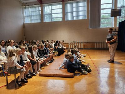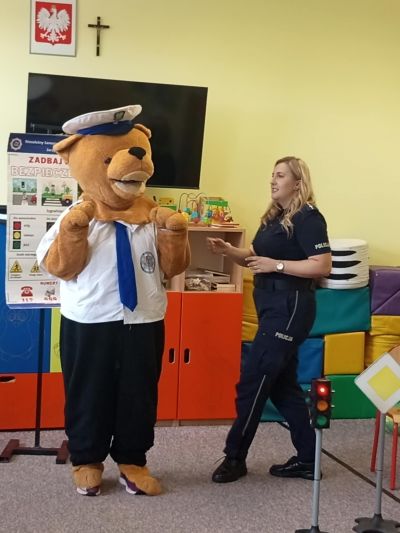 W ramach tematu ,,Bezpieczny Przedszkolak" gościliśmy funkcjonariuszkę z Komendy Powiatowej Policji w Lubaczowie, st. sierż. Elżbietę Huber, wraz z maskotką Misiem Policjantem z Komendy Wojewódzkiej Policji w Rzeszowie.